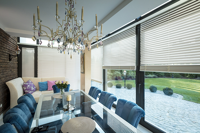 Innenjalousien verfolgen den gleichen Zweck wie Raffstoren. Sie sind allerdings vielfältiger einzusetzen, weil ihre Lamellen sowohl vertikal als auch horizontal aufgehängt werden können. Die vertikale Variante hat breitere Lamellen und überzeugt durch ihre elegante Optik vor allem bei breiten und hohen Fenstern. Sie wird häufig auch von gewerblichen Kunden nachgefragt, denn sie schaffen durch ihre Blend-, Sonnen- und Sichtschutzfunktion eine angenehme Arbeitsatmosphäre an jedem Schreibtisch. Durch individuelle Maßarbeit können wir auch abgeschrägte Fenster an Giebelwänden mit Innenjalousien ausstatten.